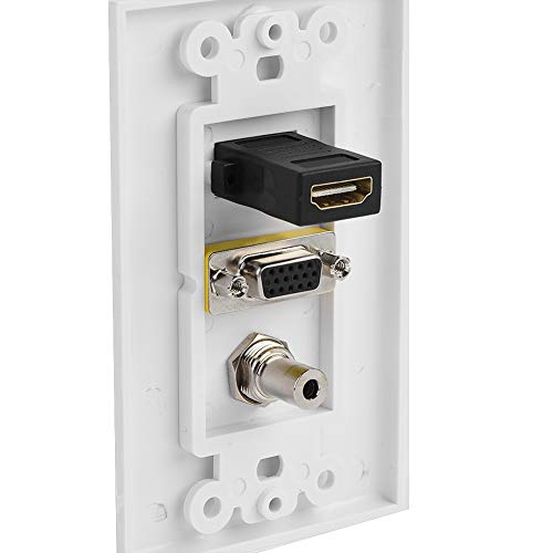 YOUTHINK Presa per Piastra a Muro, Presa Audio Video CC da 3,5 mm Femmina + HDMI + VGA 3 in 1 Presa per Caricatore da Pannello