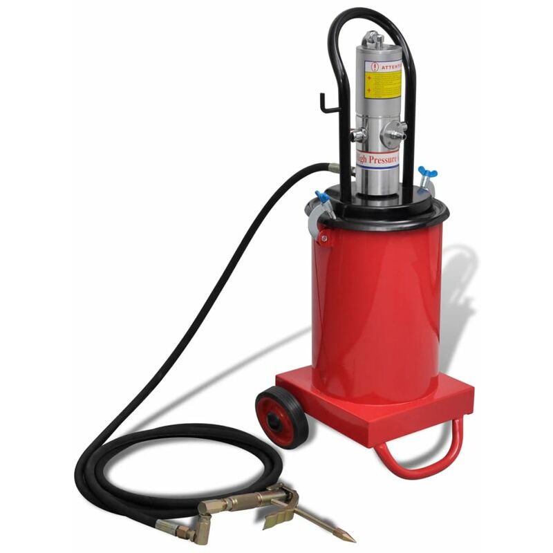 Questo iniettore di grasso pneumatico è un'apparecchiatura professionale essenziale per la meccanizzazione dell'iniezione d'olio. è ampiamente applicabile all'industria automobilistica, all'industria navale, alle macchine di ingegneria, all'industria chimica, ecc. L'iniettore di grasso ad aria compressa è caratterizzato da sicurezza e affidabilità, basso consumo energetico, alta pressione di esercizio, funzionamento semplice ed elevata efficienza, uno strumento indispensabile per la lubrificazione in officina, garage, stabilimento o mercato delle costruzioni. Dotato di impugnatura a U rovesciata e di due rotelle, questo iniettore di grasso pneumatico è facile da maneggiare e trasportare. Scorte veloci: 12 litri Pressione di ingresso: 9 bar max Larghezza: 32 cm Profondità: 28 cm Altezza: 80 cm Peso: 10,5 kg Lunghezza del tubo: 4,0 metri