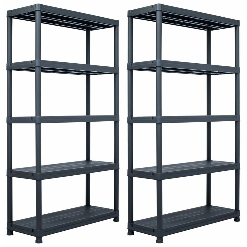 Questo scaffale può essere utilizzato in salotto come libreria oppure come espositore di oggetti decorativi, o anche sul patio come espositore per piante, ecc. Lo scaffale è realizzato in plastica robusta e resistente, per questo si pulisce facilmente con un panno umido ed è molto adatto ad ambienti umidi, come cucina, bagno, magazzino e cantina. Caratterizzato da un design compatto, lo scaffale ottimizza al massimo l'uso di spazi limitati. Con i materiali di montaggio inclusi, lo scaffale è facile da assemblare. La consegna include 2 scaffali. Colore: Nero Materiale: Plastica Dimensioni: 100 x 40 x 180 cm (L x P x A) Con 5 ripiani Capacità massima di carico di ogni ripiano: 100 kg Capacità massima di carico totale: 500 kg Materiali di montaggio inclusi Certificato TüV-GS ATTENZIONE: Per evitare il ribaltamento questo prodotto deve essere utilizzato con il dispositivo di fissaggio a parete fornito. La consegna include 2 scaffali