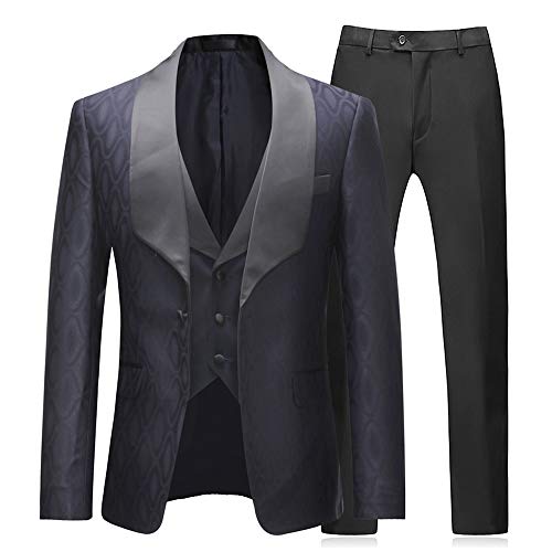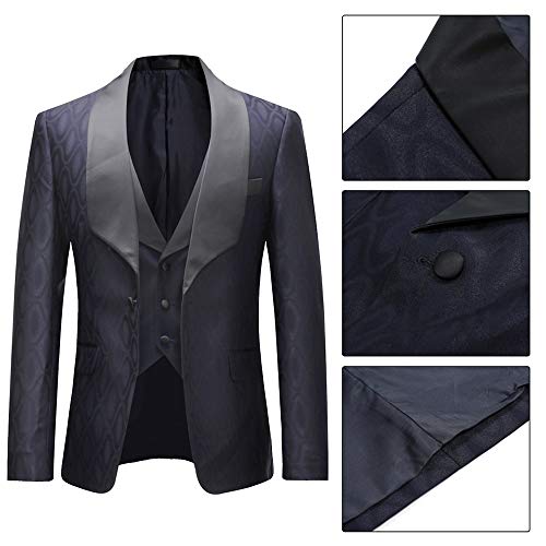 YOUTHUP Smoking da Uomo 3 Pezzi Abito Slim Fit Risvolto a Scialle Nuziale Business Blu Scuro, XL