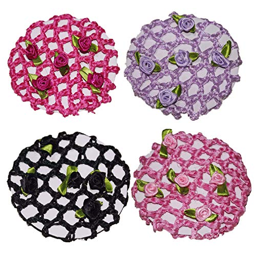 YouU Copertura a Rete per Danza Classica con Elastico per Bambini in Rosa, Celeste, Bianco, Nero, Viola, Lavanda, Rosso e Fucsia (4 Colori/con Fiore)