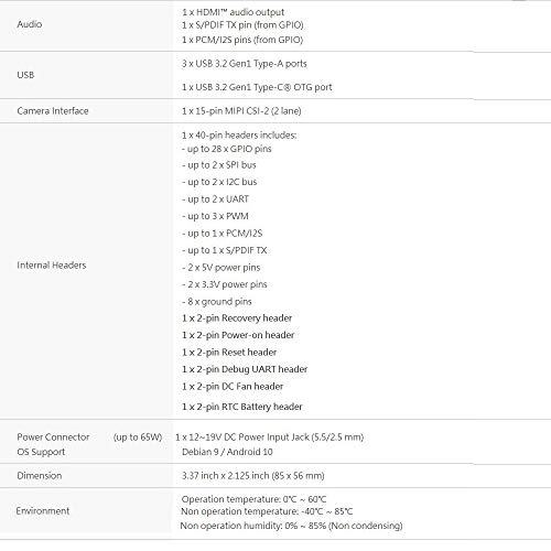 [Power SoC] Rockchip RK3399 ha Dual Core Arm Cortex-A72 @ 2.0 GHz, Quad Core Arm Cortex-A53 @ 1.5 GHz cpu, Arm Mali-T860 MP4 GPU @ 800 MHz GPU.Provide powerful computing and video processing capabilities