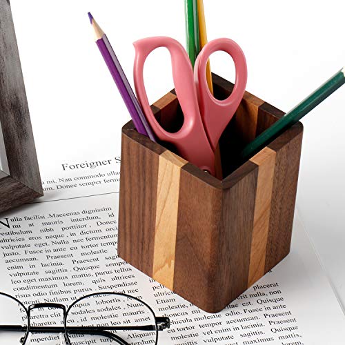 Design semplice: il nostro portapenne in legno è cucito con diversi materiali in legno, dall'aspetto elegante. Costruzione solida con bordi arrotondati. È molto resistente e robusto. Leggera.