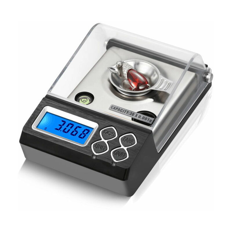 Bilancia digitale professionale precisa al milligrammo: capacità di 20 g/30 g/50 g e precisione di 0,001 g. Ampio display LCD blu a 5 cifre per una facile lettura di diverse unità: g/oz/ozt/T/ct/gn. Mini bilancia digitale ad alta precisione, perfetta per pesare l'oro o gioielli, polvere medicinale o altre piccole cose. La funzione di conteggio (tasto PCS) offre precisione di conteggio e la funzione di tara garantisce risultati più accurati. Con un paravento per evitare interferenze ambientali esterne che influiscano sulla precisione della pesatura. La funzione di spegnimento automatico consente di risparmiare la carica della batteria per un uso a lungo termine. La dimensione mini è piccola e portatile, quindi puoi portarla ovunque tu vada. Questa scala di carati è appositamente progettata per scala d'oro, scala milligrammo, gioielli, laboratorio, diamante e carati. È una mini bilancia professionale ad alta precisione (20 g/30 g/50 g 0,001 g) per pesare alimenti nella cucina di casa