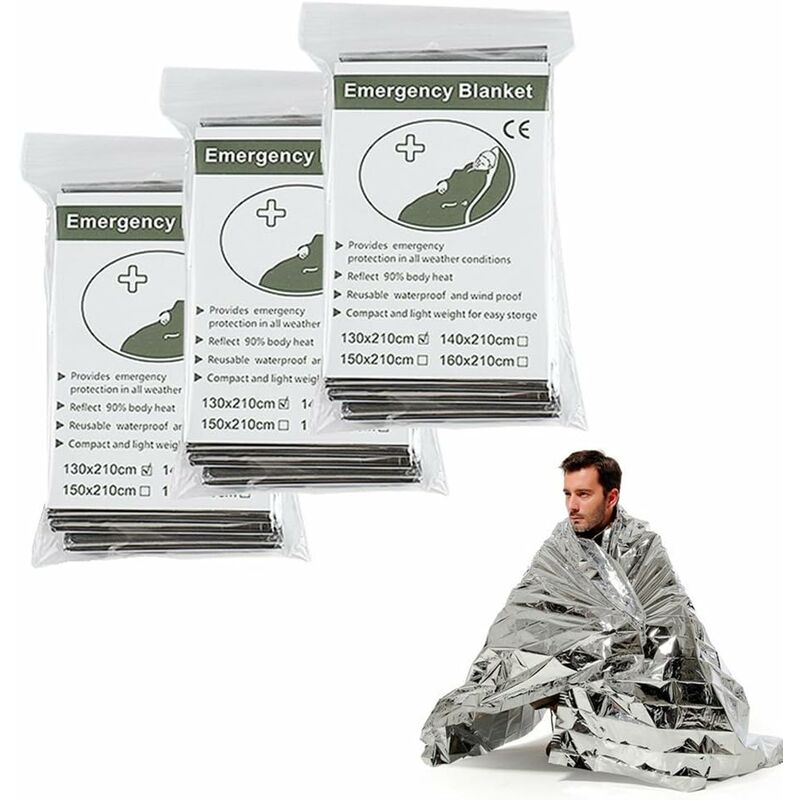 Una coperta di emergenza fornisce una protezione facile e pratica, con tempo freddo o caldo. Dimensioni di una coperta aperta: 210 x 130 cm Confezione da 6 coperte realizzate con le migliori materiale resistente agli agenti atmosferici. Progettato per riflettere e trattenere fino al 90% del calore corporeo. Le coperte sono riutilizzabili, impermeabili, antivento, resistenti al calore e all'umidità. Possono essere usati come copertura del terreno, parasole o copertura molto leggera.