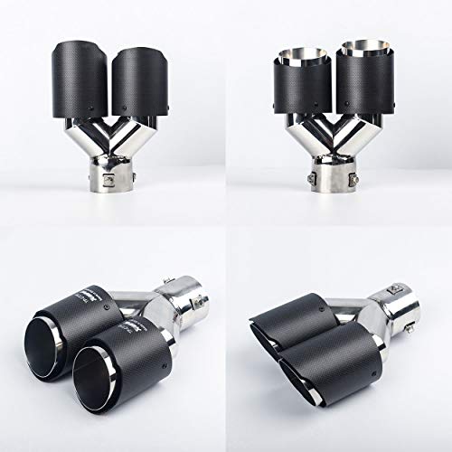 YOYT Terminale di Scarico in Fibra di Carbonio, Rivestimento Tubo di Scarico per Auto Bordo Diritto Doppia Uscita 70mm Adatto per Ogni Auto (Tipo Universale) QC