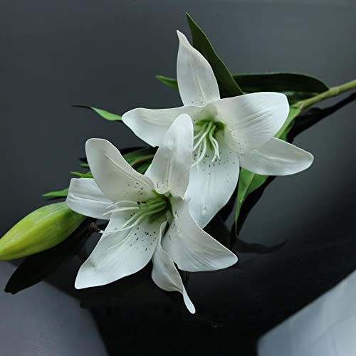 YPLonon 6Pz Fiore Artificiale del Giglio in Lattice 36cm Bouquet Fiori Artificiali Bianchi con 3 Boccioli Realistico Mazzo di Fiori Finti a Domicilio per Graves Nozze Matrimonio