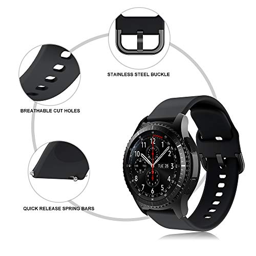 【Materiale del Cinturino Gear S3】Il morbido materiale in silicone rende il tuo cinturino Samsung Galaxy 46mm più traspirante e confortevole. Rispetta la pelle e offre una sensazione di comfort quando lo indossi durante il sonno.