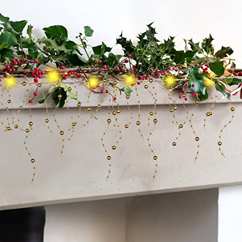 DECORAZIONE ATMOSFERA VACANZA: Aggiungi un bagliore accogliente alle decorazioni della tua casa con questa ghirlanda rustica illuminata. Presenta una ghirlanda flessibile, illuminata con bacche di Natale, decorata con centinaia di bacche oro in miniatura. È l'accessorio decorativo perfetto per la tavola, la finestra o il mantello per interni durante tutto l'anno.
