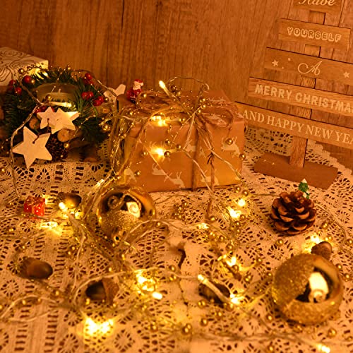 YQing 11ft Ghirlanda di luci LED perline per albero di Natale, Catena Perle Ghirlanda di Perle DIY Decorazioni Perline di tenda perline di nozze di albero di Natale per artigianato Decorazione,oro