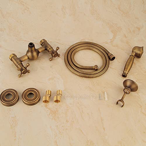 YRUIIA Retro Miscelatore Doccia con Doccetta Doppia Maniglia Rubinetto Miscelatore per Doccia-Vasca con Doccetta Set Rubinetto Doccia per Bagno-A