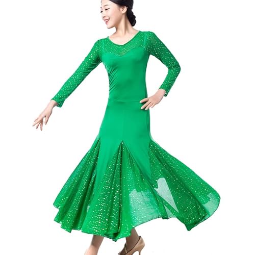 YSDS-JZ Abiti da Ballo da Sala da Donna Abito Moderno con Paillettes Elegante Vestito da Gara di Tango per Salsa Costume da Ballo da Festa Standard Valzer,Verde,S