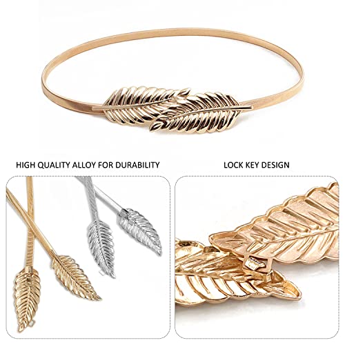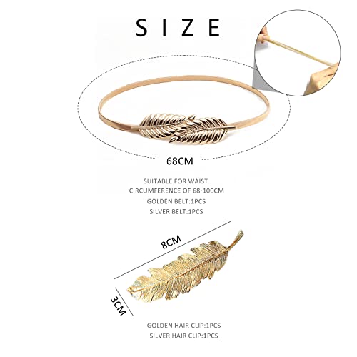 【Pacchetto incluso】 Riceverai 2 cinture elastiche a foglia e 2 forcine a foglia (oro, argento), la cintura è una bellissima decorazione dei tuoi vestiti, rendendoti più affascinante e sicuro di te.