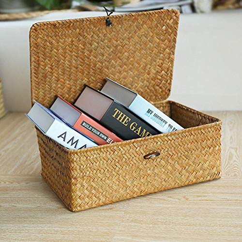 ✔ Questo cestino portaoggetti rettangolare con coperchio è stato realizzato a mano, durevole e robusto. È uno stile naturale e country che emana l'aria fresca della natura e integra il fascino naturale e aggiunge un'eleganza naturale e una sensazione di calore alla tua casa