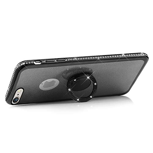 YSIMEE Compatibile Cover iPhone 6 6s,Custodie Gel Trasparente Brillantini Glitter Anti-Giallo con Rinforzato Placcatura TPU Silicone Protettivo Morbida Ultra Sottile Antiurto Case con Anello,Nero