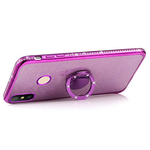 Ysimee Compatibile Cover Mi A2 Lite,Custodie Trasparente Brillantini Glitter Anti-Giallo con Rinforzato Placcatura TPU Silicone Protettivo Morbida Ultra Sottile Antiurto Case con Anello,Porpora