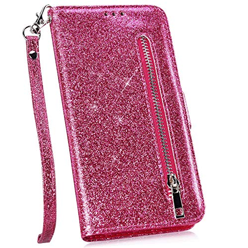 YSIMEE Compatibile con Cover Samsung Galaxy A5 2017 Custodie Flip Cover in PU Pelle Brillantini Glitter Antiurto Cerniera Folio Libro Portafoglio Kickstand Slot per Schede Chiusura Magnetica,Roseo