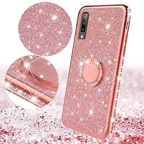 Ysimee Compatibile con Cover Samsung Galaxy A7 2018 A750,Custodie Trasparente Brillantini Glitter con Placcatura TPU Silicone Protettivo Morbida Ultra Sottile Antiurto Case con Anello,Oro Rosa