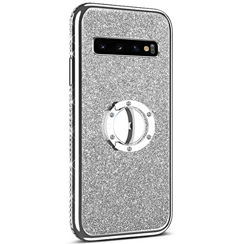 YSIMEE Compatibile Cover Samsung Galaxy S10,Custodie Trasparente Brillantini Glitter Anti-Giallo con Rinforzato Placcatura TPU Silicone Protettivo Morbida Ultra Sottile Antiurto con Anello,Argento