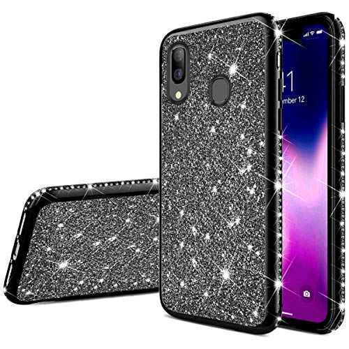 YSIMEE Compatibile Cover Samsung Galaxy A40,Custodie Gel Trasparente Brillantini Glitter Case con Scintillio Diamante Rinforzato Placcatura TPU Silicone Protettivo Morbida Ultra Sottile Antiurto,Nero