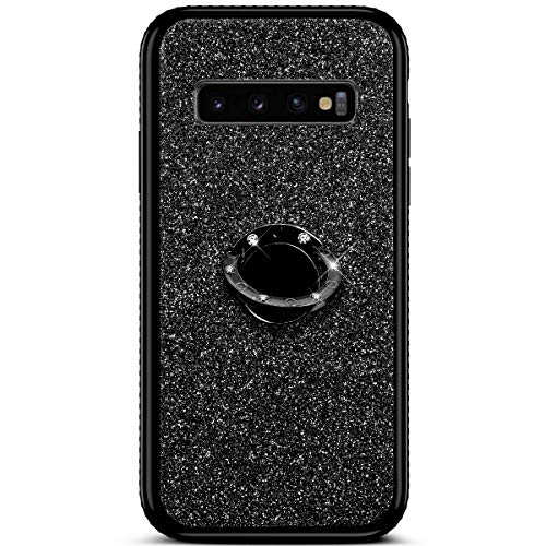 YSIMEE Compatibile Cover Samsung Galaxy S10 Plus,Custodie Trasparente Brillantini Glitter Anti-Giallo con Rinforzato Placcatura TPU Silicone Protettivo Morbida Ultra Sottile Antiurto con Anello,Nera