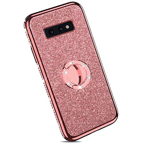 YSIMEE Compatibile Cover Samsung Galaxy S10e,Custodie Trasparente Brillantini Glitter Anti-Giallo con Rinforzato Placcatura TPU Silicone Protettivo Morbida Ultra Sottile Antiurto con Anello,Oro Rosa