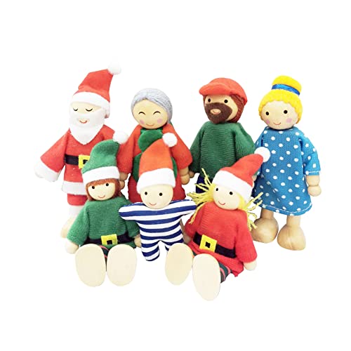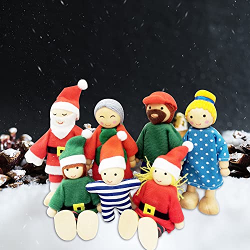 Ysimee Famiglia di Bambole in Legno di Natale Set di 7, pupazzi legno casa bambole, Pupazzi Flessibili, bambole snodabili per casa bambole, accessori per casa bambole fai-da-te
