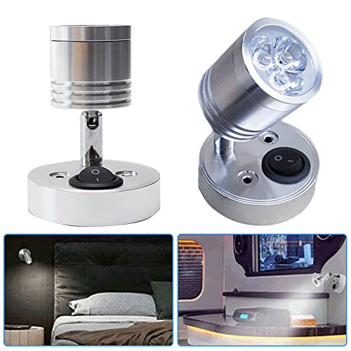 YSISLY 2pcs 12V Lampada Lettura Parete, Regolabile Lampada Lettura Led Cilindrica 3W 6000K Luce Bianca 350LM Luce da Lettura con Interruttore per Barca Auto Caravan Camper Camper Yacht Van