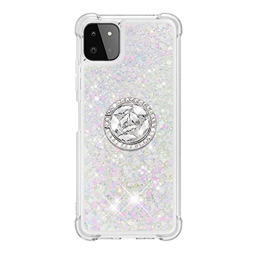 Ysnzaq Cover per Samsung Galaxy A22 5G, Glitter Brillante Floating Liquido Silicone TPU Case con Cavalletto Custodia per Samsung Galaxy A22 5G (Not 4G).YBZ White