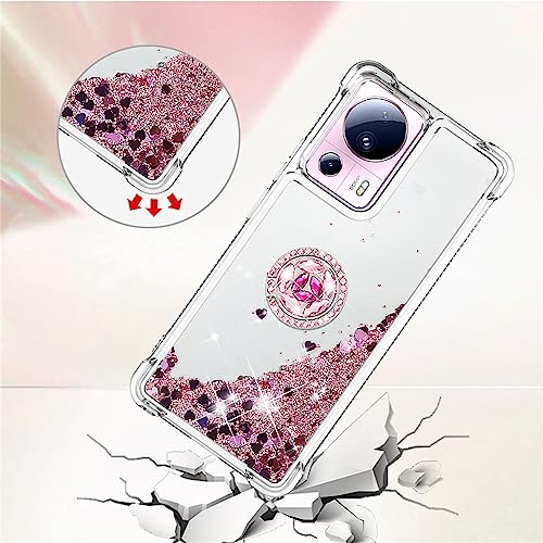 Ysnzaq Cover per Xiaomi 13 Lite 6.55", Glitter Bling Brillante Floating Liquido Silicone TPU Case con Cavalletto Custodia per Xiaomi 13 Lite.YBZ Rose Gold