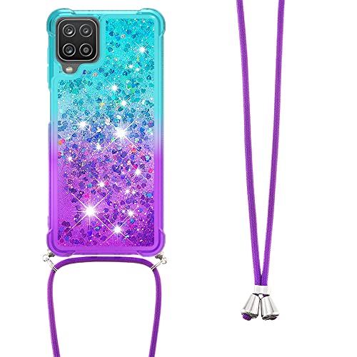 Ysnzaq Custodia con Collana per Samsung Galaxy A12 5G, Liquid Quicksand con Cordino Cover Bumper TPU Glitter Liquido Case per Samsung Galaxy A12 5G YBG Green Purple.