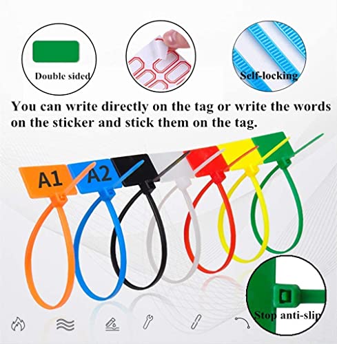 Materiale: queste etichette per fascette con zip sono realizzate in materiale di nylon di alta qualità che ha resistenza al calore, elevata resistenza alla trazione, resistenza all'acqua, resistenza allo strappo e autoadesività. Facile da usare e facile da scrivere.