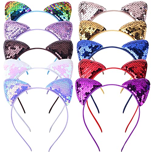 YSTrillion 10 Pezzi Cerchietto Orecchie Gatto GlitterOrecchie Di Gatto Fascia,Cerchietto Orecchie Gatto,per La Vita Quotidiana Party Cosplay(Multicolore)