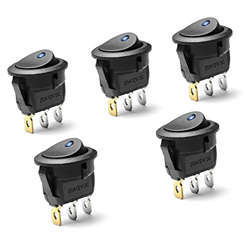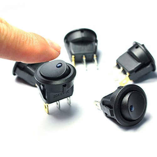 Ytian - Interruttore a bilanciere rotondo per auto, barca, con LED blu, 5 pezzi DC 20 A 12 V