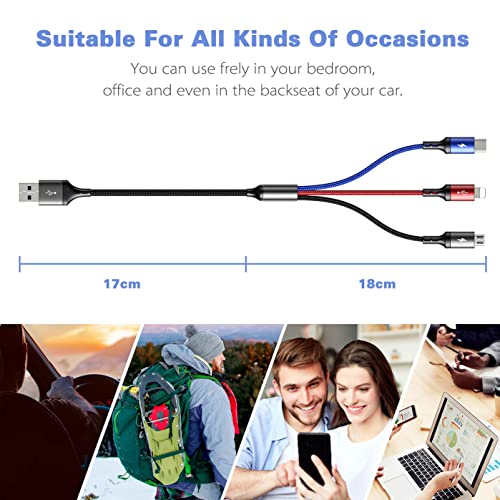 YTLUSN Short Multi Charger Cable [2Pack 35CM] 3 in 1 Charging Cable Multi USB Cable Braided Charger for IP/Type C/Micro USB for All Cell Phones/IP/LG/Huawei/HTC/Sony/Tablets (Black, 2Pack-35cm)