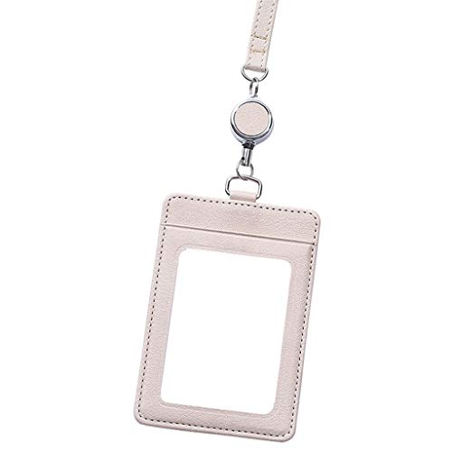 Xu Yuan Jia-Shop Porta Badge Cuoio Holder Beige Ufficio Badge Holder Verticale Stile di Carta di identificazione Badge Holder Heavy Duty Cordino Badge Libretto di Lavoro Carrier ID Carte Porta Badge