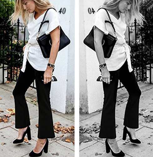 YuanDian Donna Autunno Casual Taglie Forti Slim Fit Bootcut Pantaloni Vita Alta Elastico Vita Business Stretch Flare Pantalon Nero 2XL