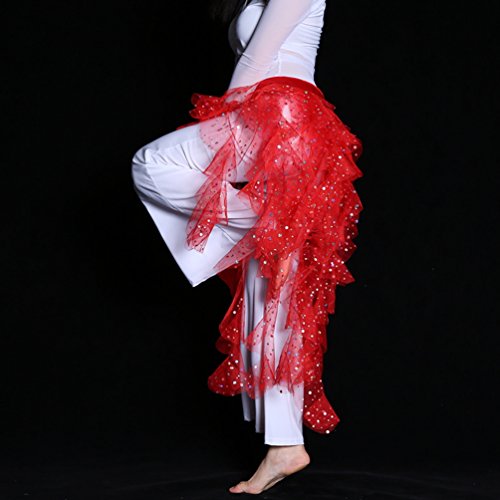 YuanDian Donna Cinture Per Danza Del Ventre Pareo Sciarpa Paillettes Lucenti Prospettiva Filato Netto Tribale Arabian Oriental Belly Dance Catena Della Vita Gonna Rosso