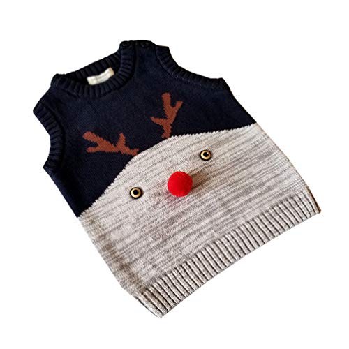 YuanDian Neonato Bambino Bambina Natale Maglieria Gilet Smanicato Maglione Senza Maniche 100% Cotone Bimba Natalizio Maglioncini Abbigliamento per Infant 64-110cm Marina 80