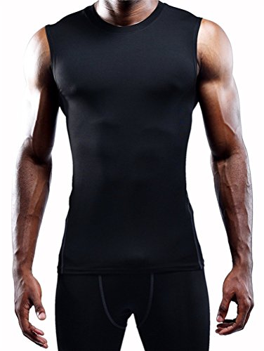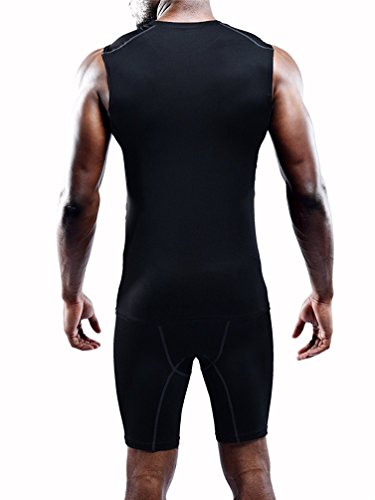 YuanDian Uomo Compressione Canotta Tank Palestra Estate Casuale Tinta Unita Aderente Elastico Basic Top Fitness Dimagrante Modellante Snellente Canottiera Magliette Senza Maniche Nero M