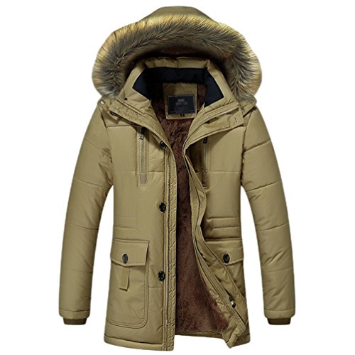 YuanDian Uomo Inverno Taglie Forti Cotone Imbottito Cappotti Parka Pelliccia Sintetica Colletto con Cappuccio Addensare Velluto Fodera Caldo Antivento Impermeabile Giacchetto Cachi5 XL