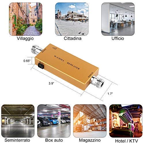 Yuanj Mini Amplificatore Segnale Booster 3G W-CMDA Ripetitore del telefono UMTS Ripetitore del Segnale Signal Repeater Amplifier Antenna Oro TIM WIND VODAFONE TRE ... (D'oro)