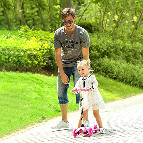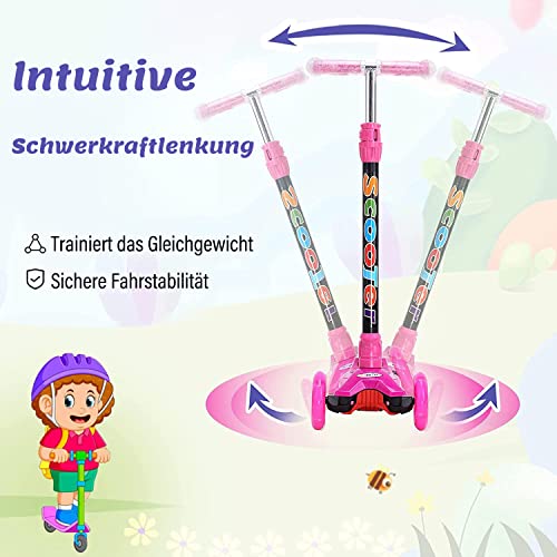 Yuanj - Monopattino a tre ruote per bambini, con ruote in poliuretano, altezza regolabile, graffiti, per bambini e bambine dai 3 ai 12 anni, colore: Rosa