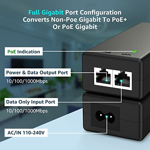 【Iniettore PoE Gigabit da 30W】Conforme a IEEE802.3af/at, l'adattatore poe fornisce 1 porta di ingresso Gigabit Ethernet e 1 porta di uscita PoE / PoE+ Gigabit Ethernet. 30W di budget di potenza e 1000Mbps di velocità internet.
