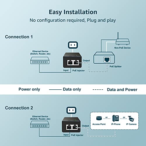 【Facile da Installare】È sufficiente collegare un dispositivo di rete PoE per soddisfare le diverse esigenze di installazione, adatto alla maggior parte degli scenari di installazione. Plug-and-play, non richiede alcuna configurazione, alimenta telecamere IP, AP wireless e altri dispositivi di rete.