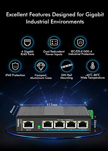 YuanLey 5 Port Gigabit Industriale DIN-Rail Switch Ethernet, 5 porte Gigabit Ethernet, IP40, Non Gestito Interruttore di Rete (da -40 a 176°F), Protezione a Vita, Custodia in Metallo