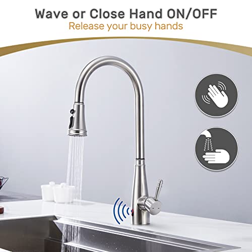 YUANNY Rubinetto Cucina Sensor Touchless con Doccetta Estraibile, Rubinetto intelligente Infrarossi, Miscelatore Cucina Senza Contatto Girevole a 360°, Rubinetto Lavello Cucina a 3 Modalità