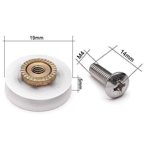 YUANQIAN Rulli di ricambio per porta doccia, passanti/ruote scanalate a V, diametro 19 mm, YQ19 (V scanalato 19 mm, 4 pezzi)