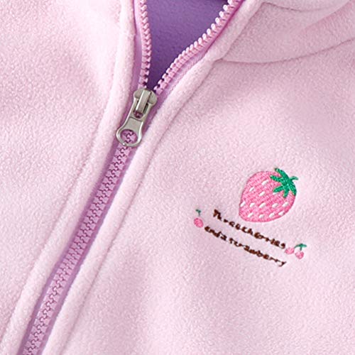 Yuanu Gilets per Bambini Pile Polare Senza Maniche Cerniera Cappotto Autunno Inverno All'Aperto Casuale Fragola Ricamo Stampa Tenere Caldo Sportiva Giacca Morbido Rosa 90