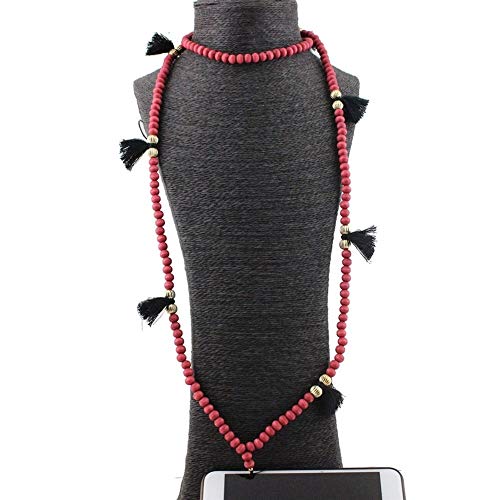 YUANYUAN520 Bracciale 9 Colore Cellulare Cinghia da Perle Tassel Hanging Neck Corda Telefono Belt Hang Catena Gioielleria (Metal Color: Red)